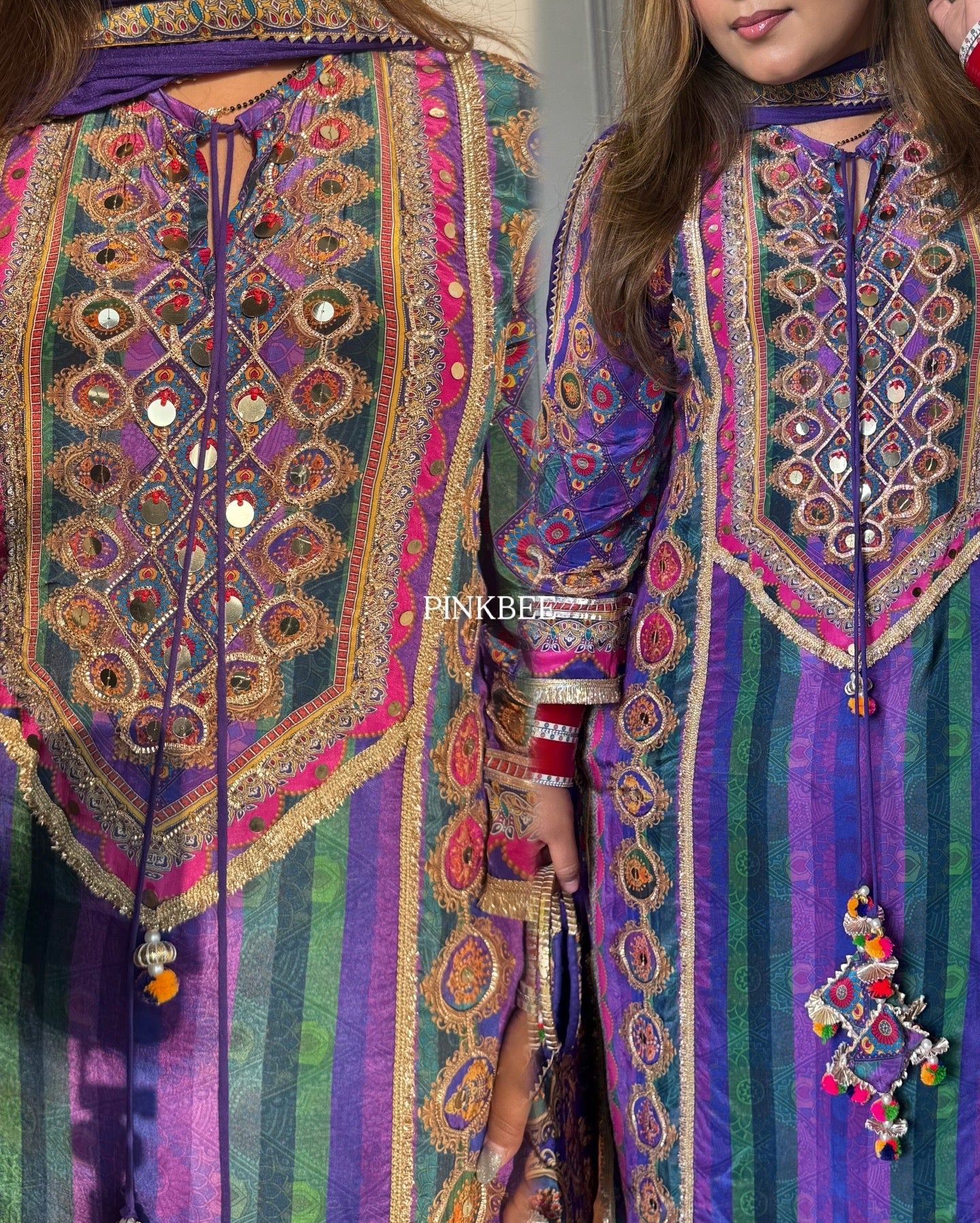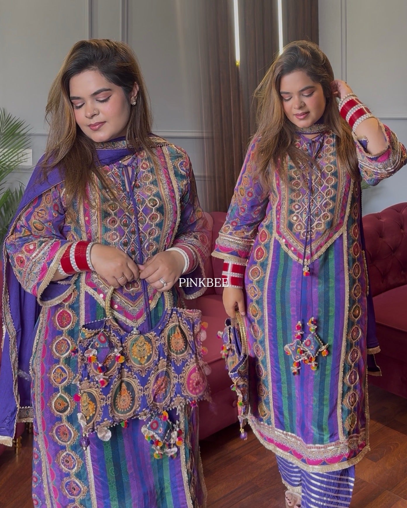 Crafted from pure crepe fabric, this exclusive suit defines sophistication with its rich texture and flawless fall. Designed for women who love timeless elegance, it comes with a matching designer handbag for that complete luxe look. 🌷💖